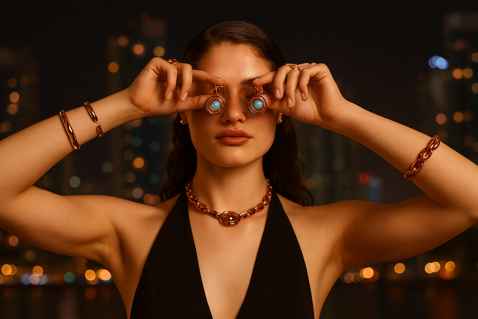 Nos créations sont pensées pour celles et ceux qui cherchent l’équilibre entre le soin et le style. Porter du cuivre, c’est choisir un bijou qui agit en silence, tout en affirmant une présence lumineuse et affirmée.